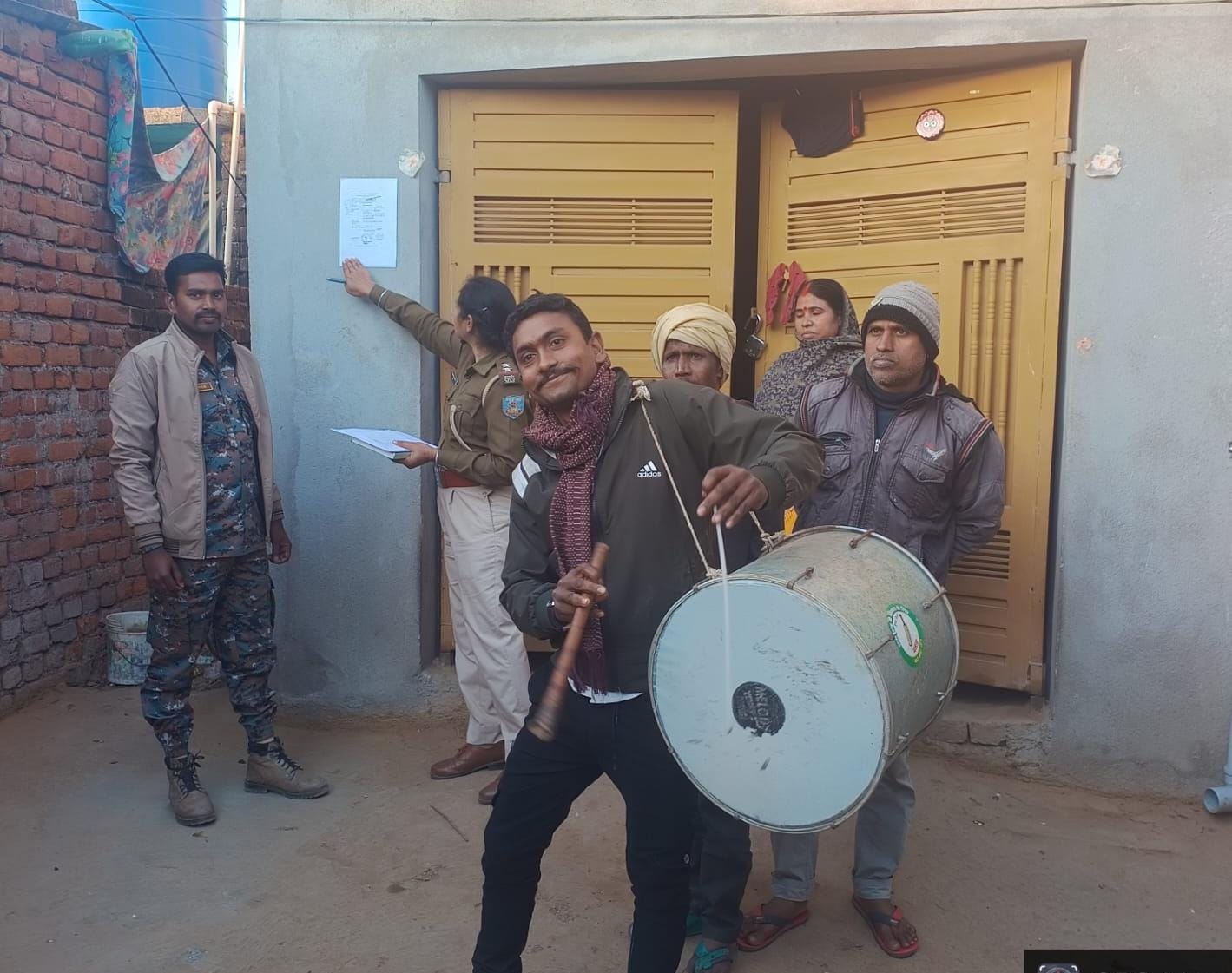 बड़कागांव: बड़कागांव पुलिस ने बृहस्पतिवार को बड़कागांव थाना कांड संख्या 37/23 के अभियुक्त रोशन कुमार रवि पिता अजय राम साकिन हरली थाना बड़कागांव के विरुद्ध उनके घर पर एस आई सावित्री कच्छप के नेतृत्व में डुगडुगी बजाकर इश्तहार चिपकाए। पुलिस ने बताया इनके विरुद्ध बड़कागांव थाना में धारा 376आईपीसी & 04 पोक्सो एक्ट के के तहत मामला दर्ज है। मौके पर एस आई सावित्री कच्छप एस आई अमित कुमार के अलावे पुलिस जवान के सशस्त्र बल शामिल थे।
