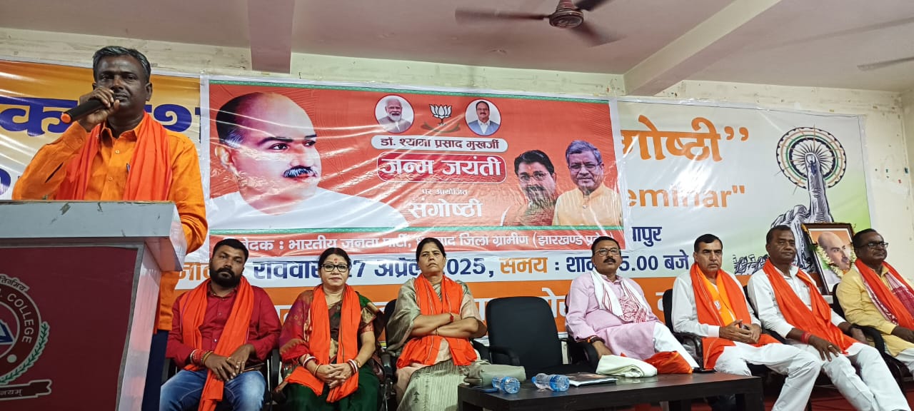 कहा की डॉ श्यामा प्रसाद मुखर्जी ने ही देश में एक विधान एक निशान का नारा दिया था। उनके विचारों पर चलने की जरूरत बताया। संगोष्ठी को संबोधित करने वालों में पूर्व विधायक अपर्णा सेनगुप्ता, भाजपा नेत्री तारा देवी, जिला अध्यक्ष घनश्याम ग्रोवर, शैलेंद्र सिंह, विकास महतो, धरनीधर मंडल, ज्ञान रंजन सिन्हा, निताई रजवार, संतलाल प्रमाणिक, शैलेन मंडल, विश्वजीत मुखर्जी,मंटू रवानी, मनोज मिश्रा, मोहन कुंभकार अल्पना मुखर्जी