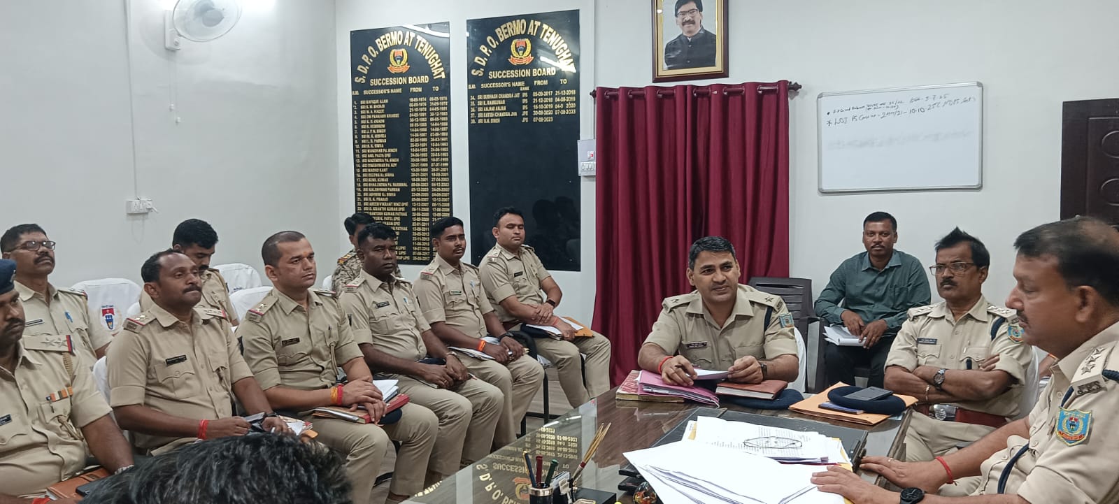 बोकारो जिला के तेनुघाट में बेरमो अनुमंडल पुलिस पदाधिकारी कार्यालय कक्ष में शनिवार को अपराध समीक्षा गोष्ठी का आयोजन किया गया। गोष्ठी में अनुमंडल के विभिन्न थाना व् ओपी के प्रभारी गण उपस्थित थे। बेरमो के एसडीपीओ वशिष्ठ नारायण सिंह की अध्यक्षता में अनुमंडल मुख्यालय तेनुघाट में मासिक अपराध गोष्ठी की गई,जिसमें अनुमंडल अंतर्गत सभी पुलिस निरीक्षक,थाना प्रभारी एवं ओपी प्रभारी उपस्थित थे।अनुमंडल पुलिस पदाधिकारी सिंह ने सभी पुलिस पदाधिकारियों को पिछले माह दुर्गा पूजा पुरी शांति पूर्ण संपन्न कराने और कई मामलों का निष्पादन करने को बधाई दी।