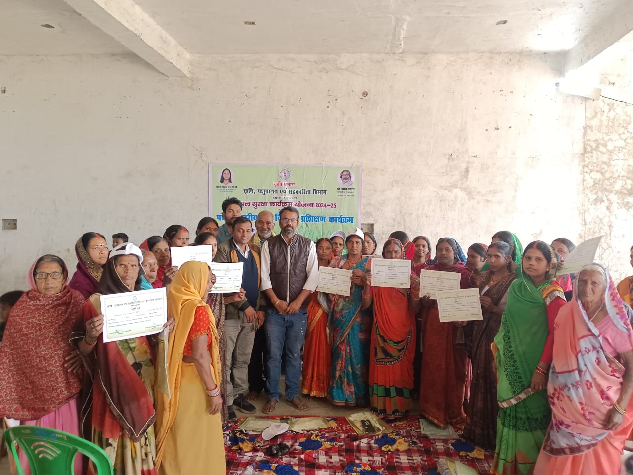 बड़कागांव: बड़कागांव कांडतरी पंचायत ग्राम सोनपुरा में कृषि पशुपालन एवं सहकारिता विभाग द्वारा जैविक खेती के बारे में तीन दिवसीय प्रशिक्षण कार्यक्रम का आज सफलतापूर्वक समापन हुआ जिसमें किसानों को मुख्य रूप से जैविक विधि से खेती करना जैविक खाद बनाना जैविक कीटनाशक बनाना और फसल को कैसे जैविक विधि से तंदुरुस्त और पौष्टिक आहार के लिए तैयार कर सकते हैं इसके बारे में प्रशिक्षण दिया गया जिसमें मुख्य अतिथि के रूप में कांडतरी पंचायत के पंचायत समिति सदस्य सह प्रखंड कृषि एवं सहकारिता विभाग के उप समिति के अध्यक्ष रंजीत कुमार चौबे भी मौजूद रहे तथा प्रशिक्षण लेने के बाद किसानों को प्रेरित किया ताकि वह जैविक विधि से खेती कर सके और कम लागत में अधिक मुनाफा कमा सकें और अपने भूमि को धीरे-धीरे जहरीले कीटनाशक एवं खाद के बुरे प्रभाव से बचा सके इसके बारे में चर्चा की साथ ही साथ प्रशिक्षण में भाग लिए सभी किसानों को सर्टिफिकेट देकर सम्मानित किया प्रखंड कृषि समन्वयक श्याम कृष्ण देव के द्वारा धन्यवाद ज्ञापन के साथ प्रशिक्षण कार्यक्रम का समापन किया गया मौके पर मुख्य रूप से पौध संरक्षण समन्वयक शंकर कुमार,कृषि मित्र रघुनंदन महतो,अजीत कुमार,शंकर राणा,मुनेश्वर राणा, कुलदीप राणा, किशोर राणा, लालदेव राणा,सिकंदर राणा, साथ ही कई महिला पुरुष किसान उपस्थित रहे।
