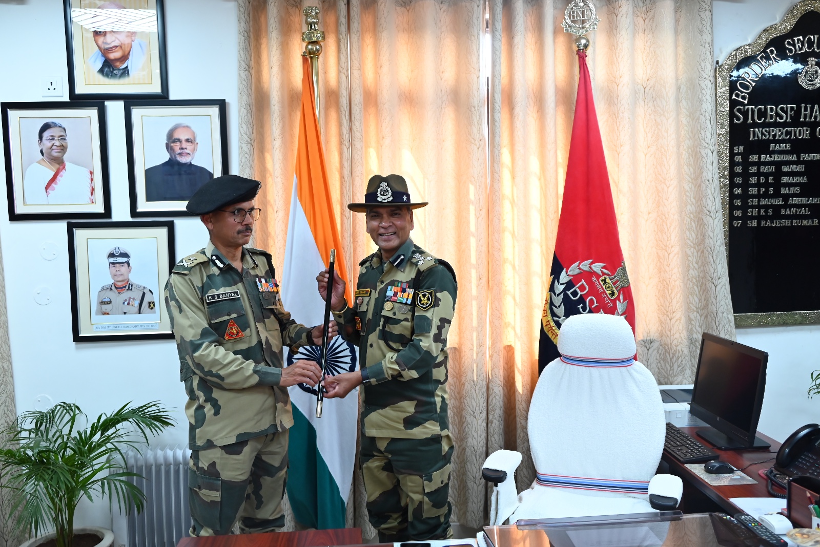 श्री कमलजीत सिंह बन्याल महानिरीक्षक ने श्री राजेश कुमार महानिरीक्षक को बैटन प्रदान किया ।महोदय ने पदभार ग्रहण करने के बाद सहायक प्रशिक्षण केंद्र के समस्त कार्मिकों के उज्जवल एवं सुखद भविष्य के लिए कामना की तथा संस्थान के प्रशिक्षण एवं प्रशासनिक प्रगति के पथ पर निरंतर अग्रसर रहने को कहा।