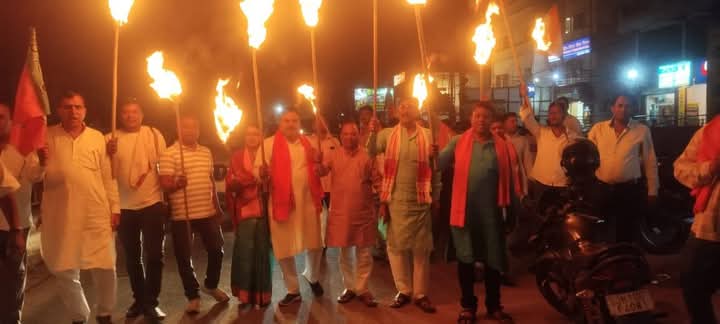 जम्मू-कश्मीर के पहलगांव में हुऐ आंतकवादी हमला अत्यंत दुखद है धर्म पुछकर मार देना क्रुरता की हद है इस घटना के विरोध में हरदेवराम स्मृति भवन से लेकर शुभाष चौक तक मशाल जुलूस जिलाध्यक्ष घनश्याम ग्रोवर के नेतृत्व में निकाली गई जिसमें भाजपा नेत्री तारा देवी मनीष साव मनोज मिश्रा राम प्रसाद महतो मोहन कुम्भकार तालेशवर साव दिनेश मंडल प्रकाश बाऊरी अनिल कुमार शकुंतला मिश्रा सुमिता दास किरीट भुषण रूज शत्रुध्न माहतो शत्रुध्न साव जग्गु साव शिवा गोस्वामी धरनीधर गोस्वामी मदन महतो आदि शामिल रहे.