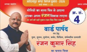 आदित्यपुर नगर निगम चुनाव, वार्ड 18 में सियासी माहौल गरम, रंजन सिंह ने विरोधियों पर लगाए गंभीर आरोप, वार्ड में कई कार्य हुए जो पहले नहीं हुए