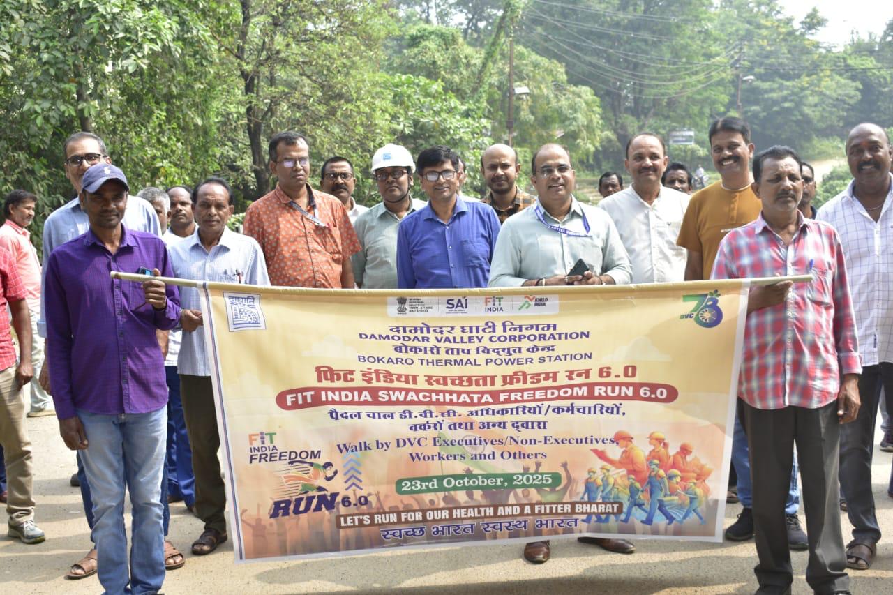 फिट इंडिया फ्रीडम रन 6.0 के तहत गुरुवार को बोकारो थर्मल के अधिकारियों और कर्मचारियों ने पैदल यात्रा पूरे बीटीपीएस कॉलोनी परिसीमन में की। यह कार्यक्रम 2 से 31अक्टूबर 2025 तक चलेगा। डीजीएम एचआर कालीचरण शर्मा ने कॉलोनी की साफ सफाई को भी पूरी तरह से देखा और कहा कि जैसे दिवाली में लोग घरों की सफाई करते है वैसे ही अपने प्रोजेक्ट को साफ रखना है। स्वास्थ्य और सफाई दोनों ही जीवन के लिए बहुत ही महत्वपूर्ण है ये सभी बाते बताई। मौके पर डीजीएम एचआर कालीचरण शर्मा, डीजीएम एम.राजीव सील, सीनियर प्रबंधक अभिजीत डुले, शैलेन्द्र कुमार, सीनियर प्रबंधक विजिलेंस महबूबुल हक, प्रबंधक इलेक्ट्रिक राकेश कुमार, प्रबंधक एचआर सुनील कुमार, अंजू बोईपाई, संज्ञा दास, उप प्रबंधक एचआर एसएए अशरफ, शिव ओझा, एमए कैफ़ी, रविचंद्र, राजेश सिंह, शिव चरण सहित अन्य कई लोग उपस्थित थे