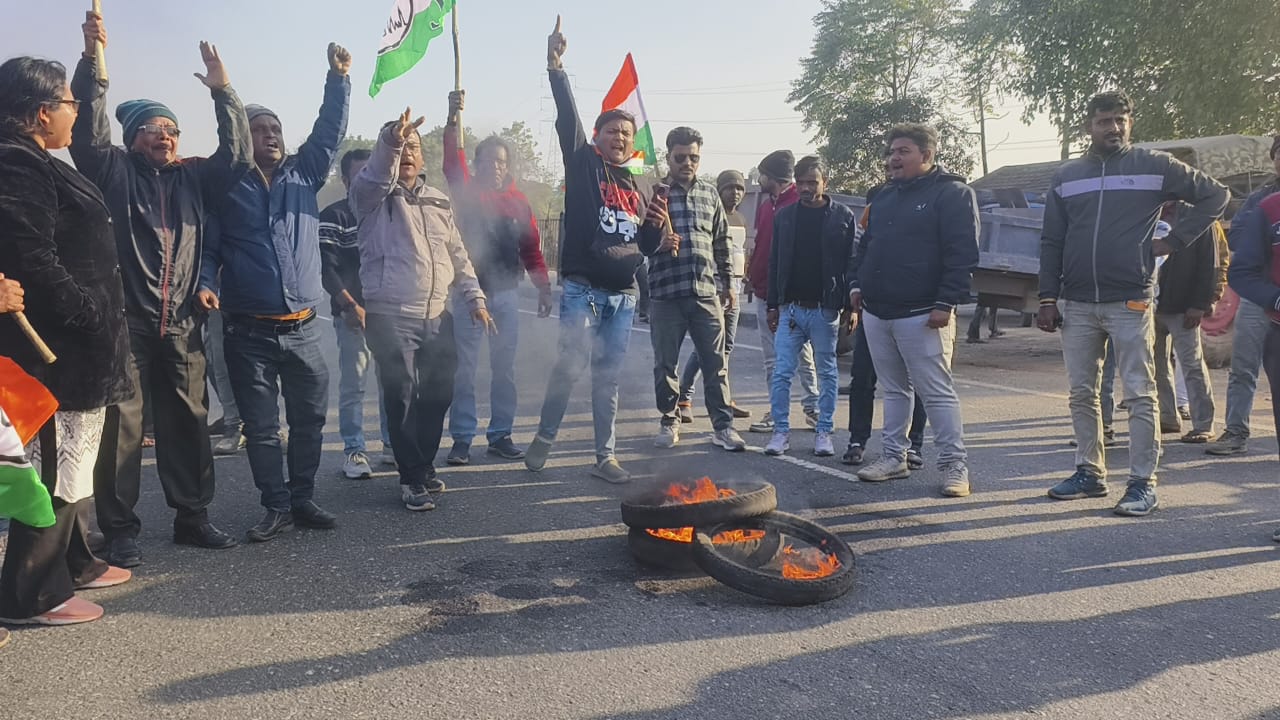 कुल्टी ब्लांक तृणमूल कांग्रेस द्वारा राष्ट्रीय राजमार्ग में पथ अवरोध कर धरना-प्रदर्शन किया गया