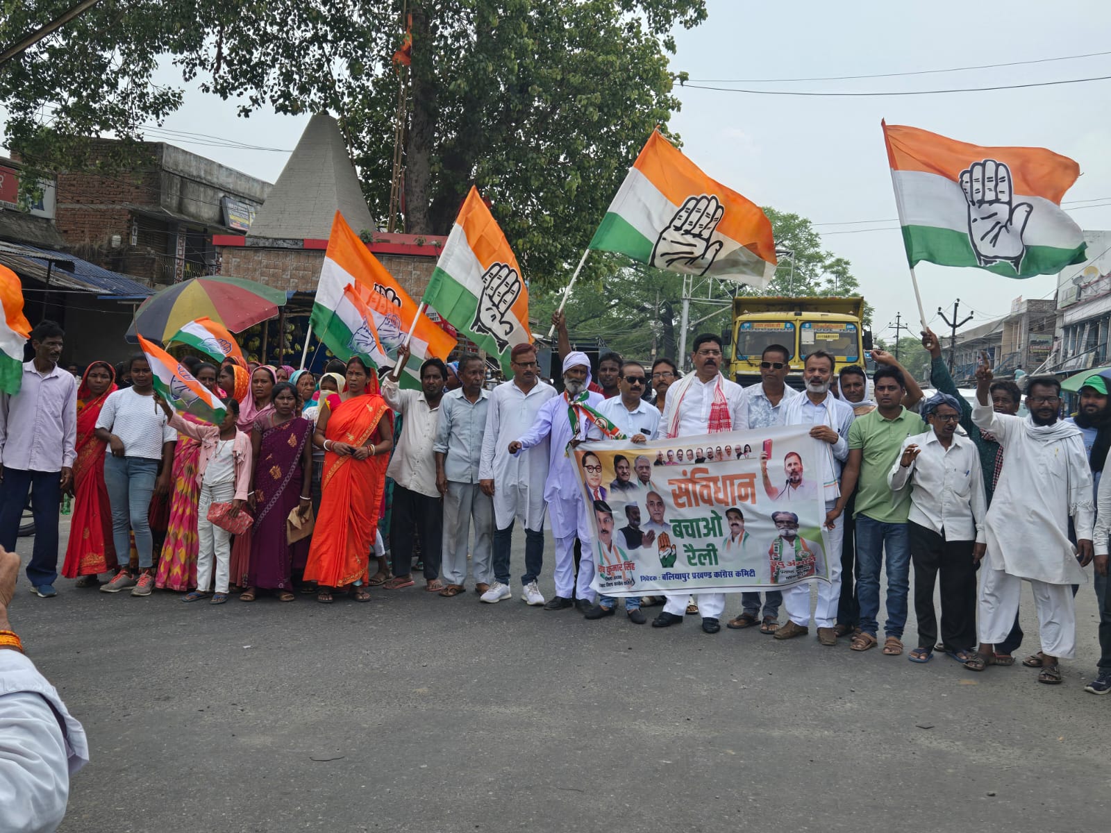 बलियापुर: कांग्रेस जिलाध्यक्ष संतोष कुमार सिंह के नेतृत्व में रविवार को बलियापुर में संविधान बचाओं रैली निकाली गई। जिसकी अध्यक्षता प्रखंड अध्यक्ष ईदू अंसारी ने किया।