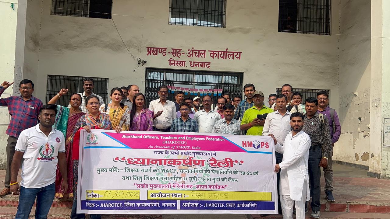 यह रैली निरसा चौक होते हुए, निरसा प्रखंड कार्यालय पहुंच कर निरसा प्रखंड पदाधिकारी इंद्रलाल ओहदार को अपनी तीन सूत्री मांगो को लेकर एक ज्ञापन सौंपा
