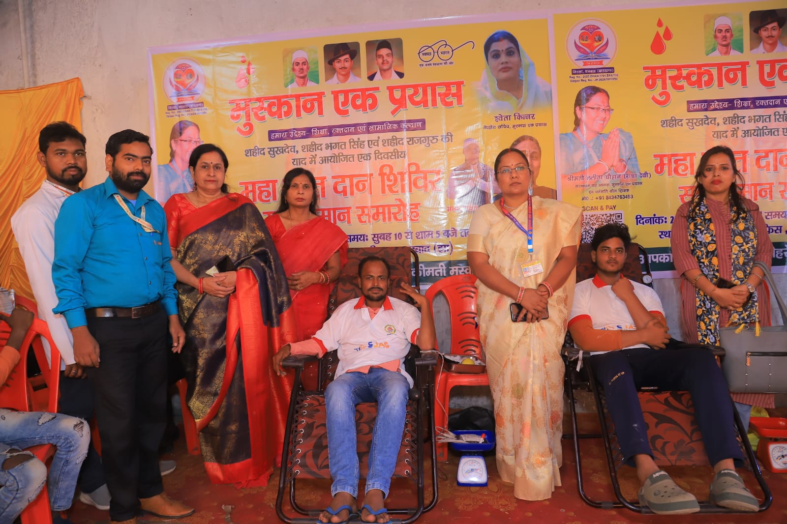निरसा मुस्कान एक प्रयास के द्वारा शहीद भगत सिंह सुखदेव और राजगुरु के शहीद दिवस के उपलक्ष में महा रक्तदान सह सम्मान समारोह का आयोजन किया गया जिसमें 65 यूनिट रक्त संग्रह किया गया मुस्कान एक प्रयास सामाजिक संस्था के संस्थापक सह अध्यक्ष ललित चौहान के नेतृत्व में धनबाद जिले में काफी सराहनीय कार्य कर रही है ललित चौहान के नेतृत्व में महा रक्तदान सह सम्मान समारोह का आयोजन किया गया निरसा इंस्पेक्टर ऑफिस के पीछे मुखिया रीता देवी के आवासीय कार्यालय के पास रखा गया एस जे ए एस अस्पताल के सुदीप पांडे की टीम के द्वारा रक्त संग्रह किया गया रक्तदान से संबंधित सभी संस्थाओं को मुस्कान एक प्रयास के द्वारा सम्मानित किया गया सभी महिला रक्तदाथरी इसमें शामिल हुई कार्यक्रम में मुख्य अतिथि जिला अध्यक्ष श्रीमती शारदा सिंह मध्य पंचायत के मुखिया रीता देवी मुस्कान एक प्रयास के संस्थापक सदस्य केंद्र सचिव श्वेता किन्नर युवा संघर्ष मोर्चा के संयोजक दिलीप सिंह समाज से भी मधु सिंन्हा पतंजलि मीडिया प्रभारी मनोज सिंह संस्थापक सदस्य अखिलेश सिंह रणधीर सिंह प्रसिद्ध अधिवक्ता राधेश्याम गोस्वामी सुदेश सिंह अनिक मुखर्जी सखी बहिनीपा सुभद्रा झा प्रीति चौधरी संजय चौहान साधन रवानी भूली ब्लड डोनर से रवि सिंह रोटी बैंक यूथ क्लब से रवि शेखर पिंकी गुप्ता समाजसेवी कल्पना मंडल विमल चंद्र मंडल गौतम मंडल समाजसेवी मनोज सिंह योग बैलेंस सेंटर के नेहा कपूर प्रसिद्ध गायक्कर कृष्ण अग्रवाल दीपक मिश्रा मुकेश बरनवाल संगीता सिंह वंदना बाउरी इत्यादि का महत्वपूर्ण योगदान रहा एवं ललित सिंह अध्यक्ष शारदा सिंह ने कहा कि रक्तदान करने से न केवल दूसरों की जान बचाती है बलिक हमारे स्वास्थ्य के लिए भी फायदेमंद है ललित चौहान ने कहा कि रक्तदान करने से रक्त में आयरन की मात्रा संतुलित रहती है जिसमें हार्ट अटैक आने का खतरा कम होता है एवं इस कार्यक्रम में कुछ पत्रकार ने भी रक्तदान किया इसमें पत्रकार को भी सम्मानित किया गया बुवाई घोष उज्जवल मंडल दिलीप सिंह ने इस तरह के आयोजन के लिए मुस्कान एक प्रयास संस्था को बधाई दी उन्होंने कहा कि रक्तदाताओं में ललित सिंह गोपाल भट्टाचार्य 89 बार रक्तदान कर चुके हैं जो की प्रशंसा के पत्र भी है संवाददाता उज्जवल कुमार मंडल गोविंदपुर