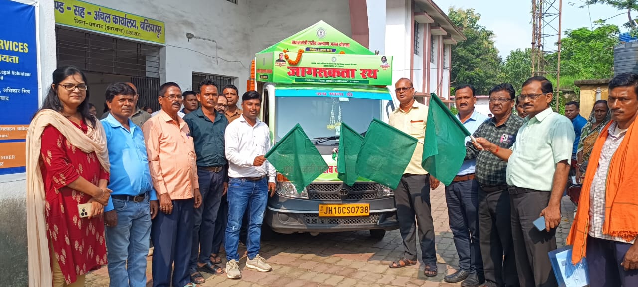 बलियापुर- प्रखंड कार्यालय परिसर से प्रधानमंत्री गरीब कल्याण योजना रथ को हरी झंडी दिखाकर क्षेत्र के लिए रवाना किया। जो 25 अगस्त से 29 अगस्त तक प्रखंड के विभिन्न पंचायत एवं गांव
