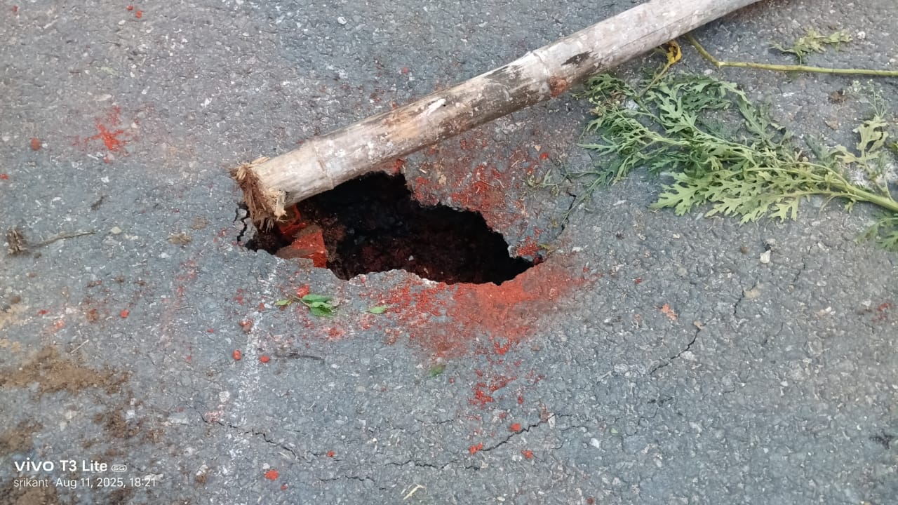 भूली बस्ती के पास थ्रू लेन की सड़क शाम करीब 4:30 बजे अचानक धंस गई, जबकि सर्विस लेन में भी लगभग एक फीट का गोफ (गड्ढा) बन गया। स्थानीय लोगों ने दुर्घटना से बचने के लिए तुरंत गड्ढों के पास पत्थर और झाड़ियां लगाकर वाहनों को सचेत किया।