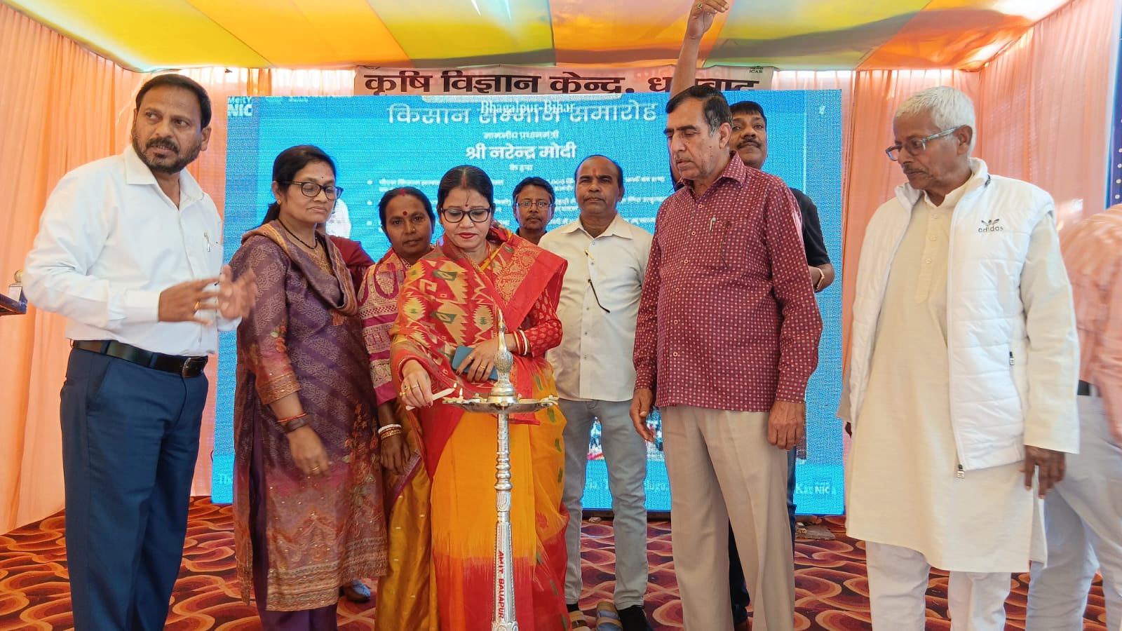 बलियापुर: कृषि विज्ञान केन्द्र में सोमवार को प्रधानमंत्री किसान सम्मान निधि का 19वां किस्त का भागलपुर से सीधा प्रसारण का आयोजन किया गया। किसानों प्रधानमंत्री नरेन्द्र मोदी के संबोधन को सुना। कार्यक्रम का उद्घाटन मुख्य अतिथि भाजपा नेत्री तारा देवी, जिलाध्यक्ष घनश्याम ग्रोवर ने किया। तारा देवी ने कहा कि प्रधानमंत्री नरेन्द्र मोदी किसानों के लिए बेहतर काम कर रही हैं। किसानों को केन्द्र सरकार द्वारा दिए जा रहे योजनाओं का लाभ लेना चाहिए। इस दौरान बलियापुर प्रखंड के किसानों ने उन्नत किस्म के सब्जी फसल स्टाल लगाए। वैज्ञानिक तरीके से खेती करने के लिए सारथी मंडल, मंजू देवी, जगदीश महतो, बासुदेव महतो को सम्मानित किया गया। मौके पर वैज्ञानिक डॉक्टर ललित दास, डॉक्टर सीमा सिंह, डॉक्टर देवकांत प्रसाद, डॉक्टर राजीव कुमार, रमन कुमार श्रीवास्तव, संजय कुमार, जिला कृषि पदाधिकारी अभिषेक मिश्रा, अल्पना मुखर्जी, बेंगू ठाकुर, विश्वजीत मुखर्जी, विजय रवानी आदि मौजूद थे।