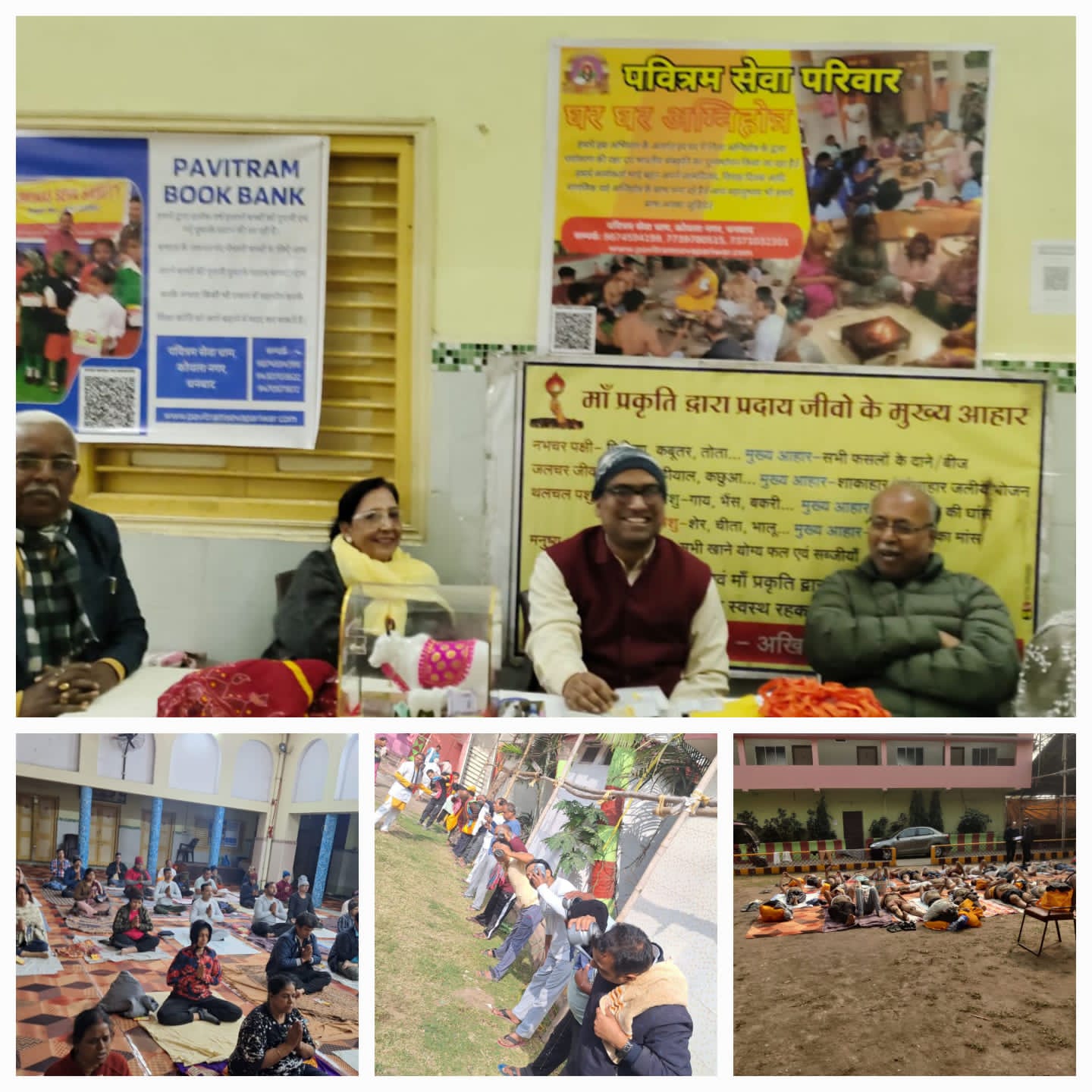 धनबाद की धरती पर पुराना बाजार स्थित शंभू धर्मशाला में, *पवित्रम सेवा परिवार* द्वारा आयोजित 6दिवसीय पूर्ण आवासीय शिविर का शुभारम्भ 7 जनवरी को शाम 6 बजे धनबाद के लोकप्रिय सांसद श्री ढुल्लु महतो जी के कर कमलो द्वारा दीप प्रज्ज्वलन करके किया गया था, आज पांचवा दिन है, कल दोपहर मे समापन समारोह होगा जिसमे कई विशिष्ट अथिति भाग लेगे जिसमे लोकप्रिय माननीय विधायिका रागनी सिँह एवं राज सिन्हा भी शामिल होंगे,पवित्रम सेवा परिवार पिछले कई वर्षो से घायल, बीमार गोवंश की सेवा -चिकित्सा, गांव गांव में जैविक खेती एवं गौत्पादों का निःशुल्क प्रशिक्षण, आरोग्य, पर्यावरण, शिक्षा के लिए कार्य कर रहा है, इस शिविर में धनबाद शहर के आलावा बाहर से भी हरियाणा,उत्तरप्रदेश, पश्चिम बंगाल, बिहार आदि राज्यों से भी लोग भाग लेने आये है, इस शिविर का उद्देश्य आहार एवं जीवन-शैली को ठीक करते हुए प्राकृतिक चिकित्सा पद्द्तियो के माध्यम से साध्य एवं असाध्य सभी रोगों को ठीक करना है।