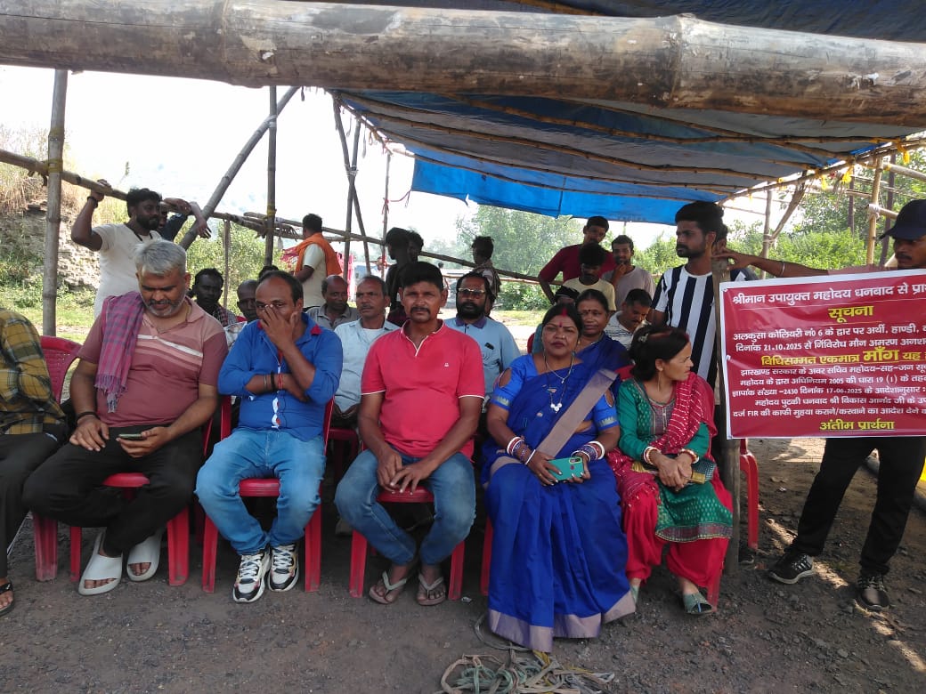 केंदुआ।भारत कोकिंग कोल लिमिटेड की कुसुंडा क्षेत्र संख्या 6 के न्यू गोधर कुसुंडा कोलियरी अंतर्गत अलकुसा कोल डंप में मैनुअल् ट्रक लोडिंग में स्थानीय बेरोजगार मजदूरों को रोजगार देने की मांग को लेकर पूर्व निर्धारित कार्यक्रम के अनुसार उपेंद्र शर्मा उर्फ मंटू शर्मा ने मजदूरों के साथ अलकुसा सेक्सन के मुख्य द्वार पर अर्थी, हंडी ,कफन रखकर निर्विरोध मौन आमरण अनशन धरना का शुभारंभ किया ।