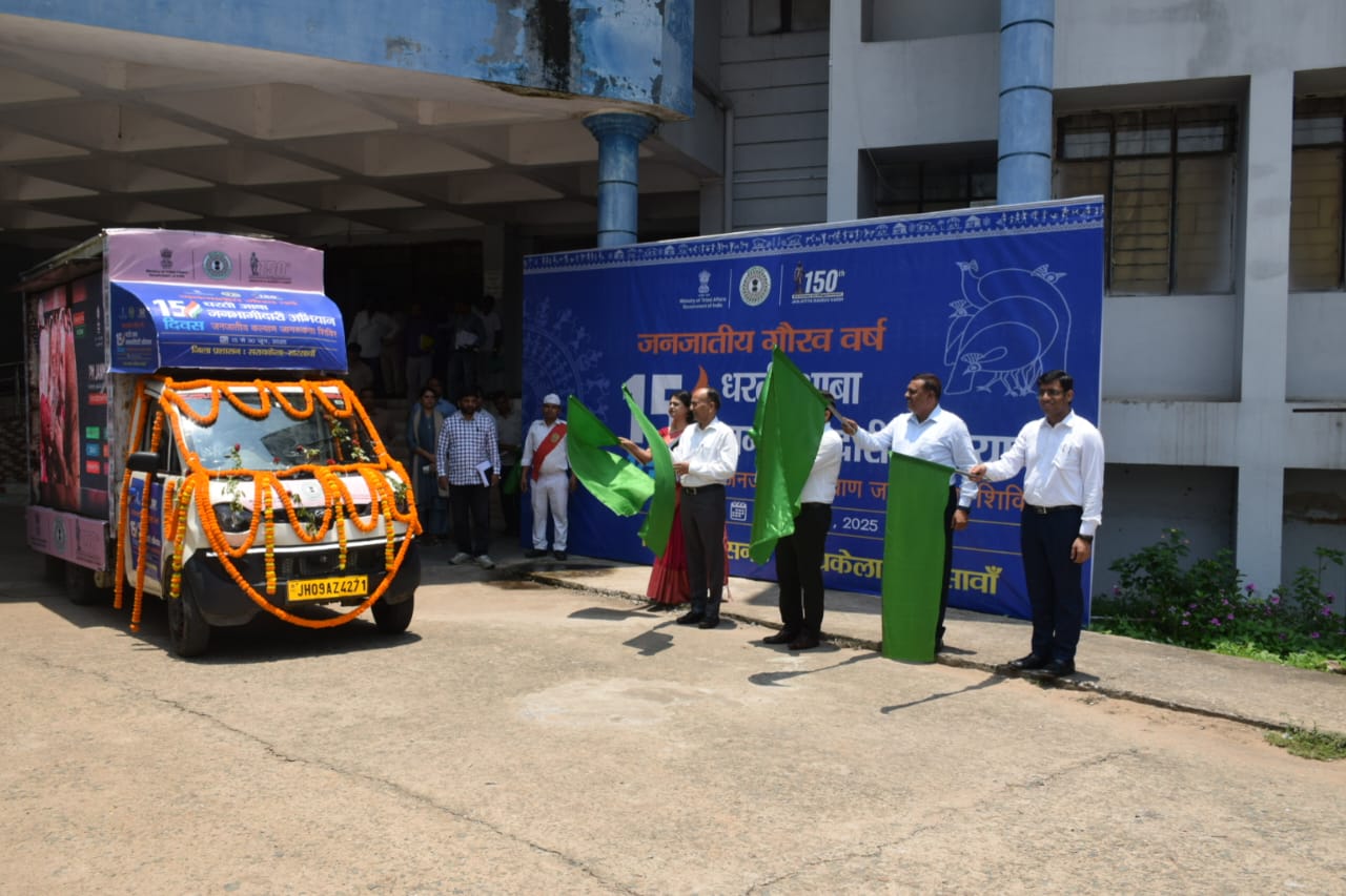 सरायकेला : आज समाहरणालय परिसर से जनजातीय कार्य मंत्रालय, भारत सरकार के संयुक्त सचिव श्री बृजनंदन प्रसाद एवं उपायुक्त, सरायकेला-खरसावां श्री नितिश कुमार सिंह द्वारा “धरती आबा जनभागीदारी अभियान” के अंतर्गत जागरूकता रथ को हरी झंडी दिखाकर रवाना किया गया। यह जागरूकता रथ जिले के विभिन्न प्रखंडों एवं पंचायतों में भ्रमण कर 15 से 30 जून 2025 तक आयोजित होने वाले शिविरों की जानकारी देगा तथा नागरिकों को उनमें प्राप्त की जाने वाली योजनाओं और सेवाओं के संबंध में जागरूक करेगा।