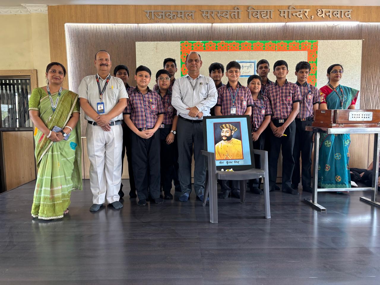 धनबाद।राजकमल सरस्वती विद्या मंदिर धनबाद में बुधवार को बाबू वीर कुंवर सिंह के विजयोत्सव पर सभा आयोजित की गई जिसमें लगभग 4000 की संख्या में विद्यार्थियों ने भाग लिया। साथ ही साथ शेक्सपियर की 409वीं जयंती भी मनाई गई। मौके पर विद्यालय के प्राचार्य सुमंत कुमार मिश्रा ने बच्चों को संबोधित करते हुए कहा कि बाबू वीर कुमार सिंह वीरता के प्रति मूर्ति थे ।
