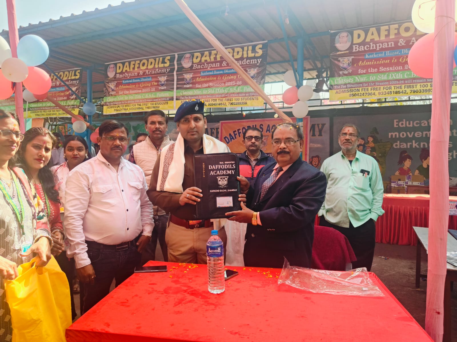 पुटकी।डैफोडिल्स एकाडेमी, करकेंद में दशम वर्ग के विदाई समारोह धूमधाम से मनाया गया। इस अवसर पर सांस्कृतिक कार्यक्रम के साथ विज्ञान प्रदर्शनी का भी आयोजन किया गया। विज्ञान एंड आर्ट प्रदर्शनी का उद्घाटन मुख्य अतिथी डक्टर काशीनाथ चटर्जी, फाउंडर सेक्रटरी जिला साक्षरता वाहिनी,धनबाद, अध्यक्ष। राधेश्याम गोस्वामी , वरिष्ठ अघिवकता, धनबाद बार एवं विधालय प्राचार्य तापस बनर्जी द्वारा संयुक्त रूप से द्वीप प्रज्ज्वलित कर किया गया। विज्ञान प्रदर्शनी में 24 छात्र-छात्राओ का टीम द्वारा विज्ञान प्रदर्शन लगाया गया, जो एक से बढ़कर एक था। इसमें नवम वर्ग के छात्रो द्वारा बनाया गया रेन वाटर हार्वेस्टिंग को प्रथम, अष्टम वर्ग के छात्राओ द्वारा बनाया गया ए. आई रोबोट को द्वितीय, अष्टम वर्ग के छात्रो द्वारा बनाया गया जे. सी. पी.स्मार्ट सीटी एंड डिजीटल मार्केटिंग एवं पंचम वर्ग के छात्रो द्वारा बनाया गया चंद्रयान को तृतीय पुरस्कार से सम्मानित किया गया। शेष सभी को स्वांतना पुरस्कार दिया गया। दशम वर्ग के विदाई समारोह में विद्यालय छात्र-छात्राओ द्वारा रंगारंग सांस्कृतिक कार्यक्रम प्रस्तुत किया गया। इस कार्यक्रम में विशिष्ट अतिथी, चार्टर पांईट, धनबाद के श्री बिजय सेनगुप्ता सर, विशिष्ट अतिथी श्री सत्यजीत कुमार, थाना प्रभारी, लोयाबाद थाना ने दशम वर्ग के छात्र-छात्राओ के बीच अपना अपना विचार व्यक्त किए ,आशीर्वाद दिए एवं जीवन में आगे बढ़ने के लिए मूल्यवान सुझाव दिए। विद्यालय प्राचार्य तापस बनर्जी ने मुख्य अतिथी,एवं विशिष्ट अतिथियो को अंगबसत्र देकर सम्मानित किए। विद्यालय प्राचार्य तापस बनर्जी एवं उपस्थित सभी शिक्षक-शिक्षिकाओ ने अपना अपना विचार व्यक्त करते हुए दशम वर्ग के छात्र-छात्राओ कौ आशीर्वाद एवं सुझाव दिए। कार्यक्रम का संचालन उप प्राचार्य देवाशीष मुखर्जी एवं वरिष्ठ शिक्षक प्रमोद सिन्हा कर रहे थे कार्यक्रम को सफल बनाने में विद्यालय के सभी शिक्षक-शिक्षिकाओ का सराहनीय योगदान रहा।