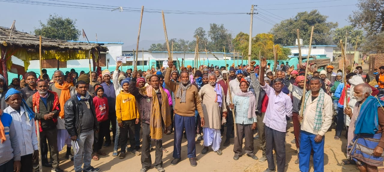 कोल खनन कंपनी का ग्राम सभा की सूचना पर विरोध के लिए पहुंचे ग्रामीण