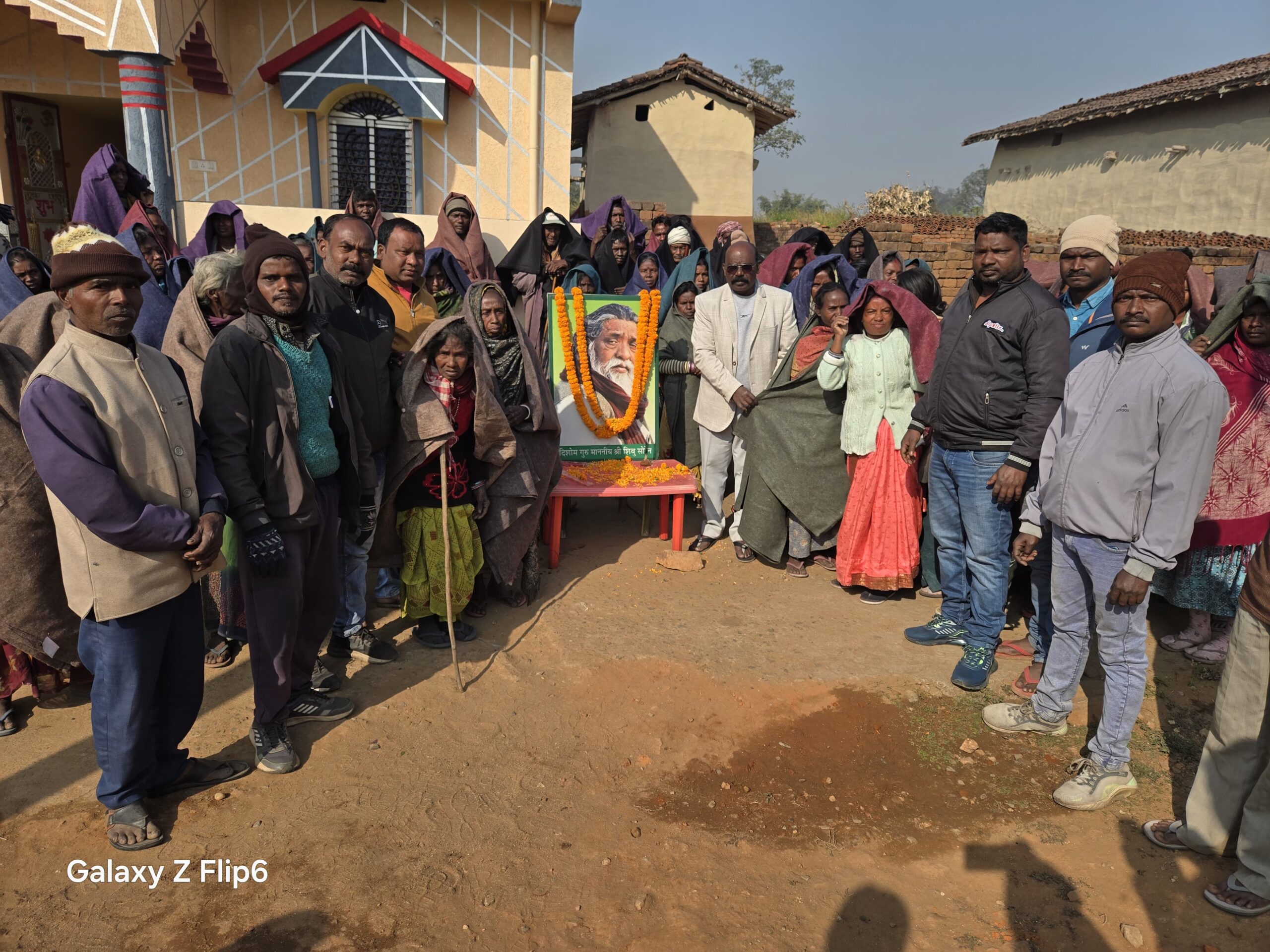बड़कागांव। प्रखण्ड के गरसुल्ला पंचायत धनश्लेया में दिशाेम गुरु शिबू सोरेन के 82वीं जयंती के शुभ अवसर पर झारखंड सरकार राज्य परिवहन प्राधिकार सदस्य सह झारखंड मुक्ति मोर्चा के हजारीबाग जिला अध्यक्ष संजीव कुमार बेदिया ने बुजुर्ग महिला-पुरुष के बीच 200 कंबल वितरण किया एवं तस्वीर पर पुष्पांजलि कर श्रद्धांजलि अर्पित किया।