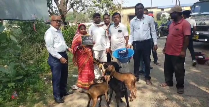 सरायकेला – खरसावां जिला के नीमडीह प्रखंड अंतर्गत मुख्यमंत्री पशु घन योजना के तहत सात लाभुक के बीच 35 बकरी वितरण
