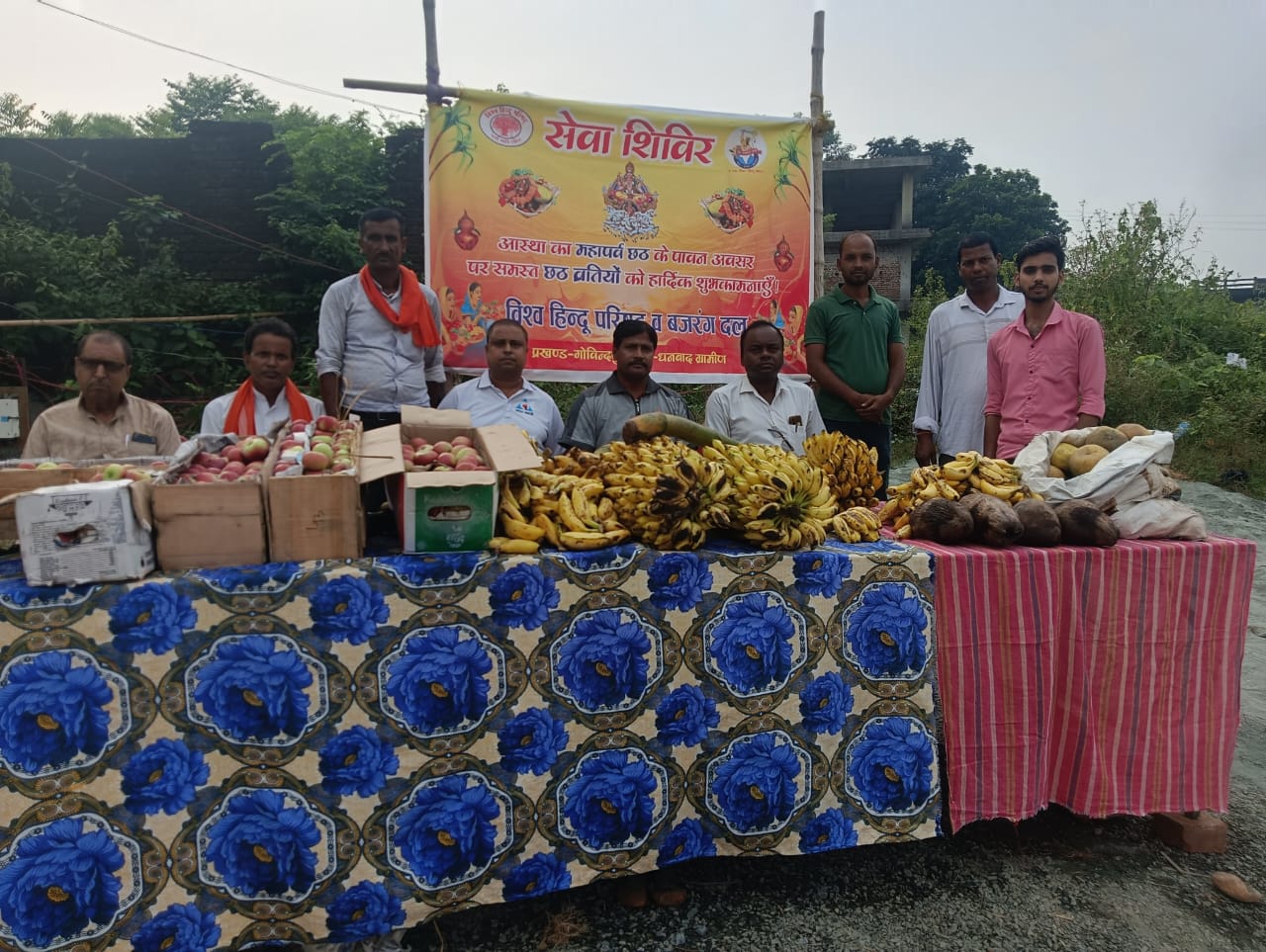 गोविंदपुर के सेवा शिविर में छठव्रतियों को अर्घ्य देने हेतु आवश्यक पूजा सामग्री का निःशुल्क दान किया गया। वितरित की गई सामग्री में मुख्य रूप से दूध, केला, नारियल, आम की लकड़ी के दतुइन, धूप, अगरबत्ती, सिंदूर इत्यादि शामिल थे।