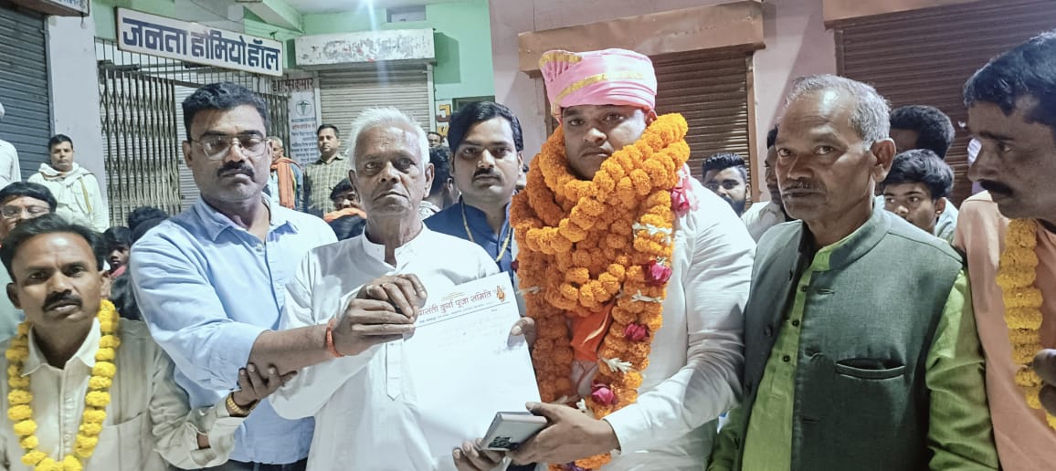 के अंतर से हरा दिया। चुनाव में 18 वोट विवेक सोनी को मिला वही महज 8 वोट बिंदु दांगी को प्राप्त हुआ। विवेक सोनी ने 10 वोटों की भारी अंतर से चुनाव जीतकर, लगातार दूसरी बार बड़कागांव रामनवमी महासमिति के अध्यक्ष चुने गए। नए रामनवमी महासमिति के अध्यक्ष विवेक सोनी को पूर्व विधायक लोकनाथ महतो के हाथों प्रशस्ति पत्र देकर व माला पहनाकर अभिनंदन किया । मौके पर विधानसभा सांसद प्रतिनिधि पूनम साहू , विधानसभा सांसद सह प्रतिनिधि कृष्णा राम बड़कागांव मंडल सांसद प्रतिनिधि रंजीत कुमार ,सांसद विधानसभा मीडिया प्रभारी उमेश दांगी, शशि कुमार मेहता, संदीप कुशवाहा, मां बासंती दुर्गा पूजा समिति के अध्यक्ष सुरेंद्र कुमार सोनी ,अनु विश्वकर्मा, विवेक सोनी ,बवन देव कुमार, दामोदर प्रसाद मेहता, रामधनी महतो, रामपति राम, महावीर राम, सरोज सोनी, झमन महतो ,प्रवीण कुमार, सुरेंद्र कुमार के अलावा कई लोग उपस्थित थे।